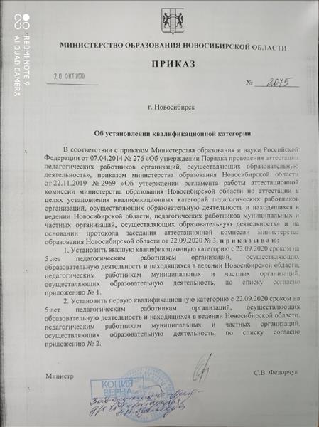 Первая (Присвоена 22.09.2020)
