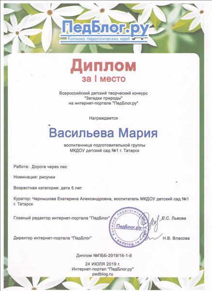 | Диплом за I место Всероссийский детский творческий конкурс "Загадки природы"
